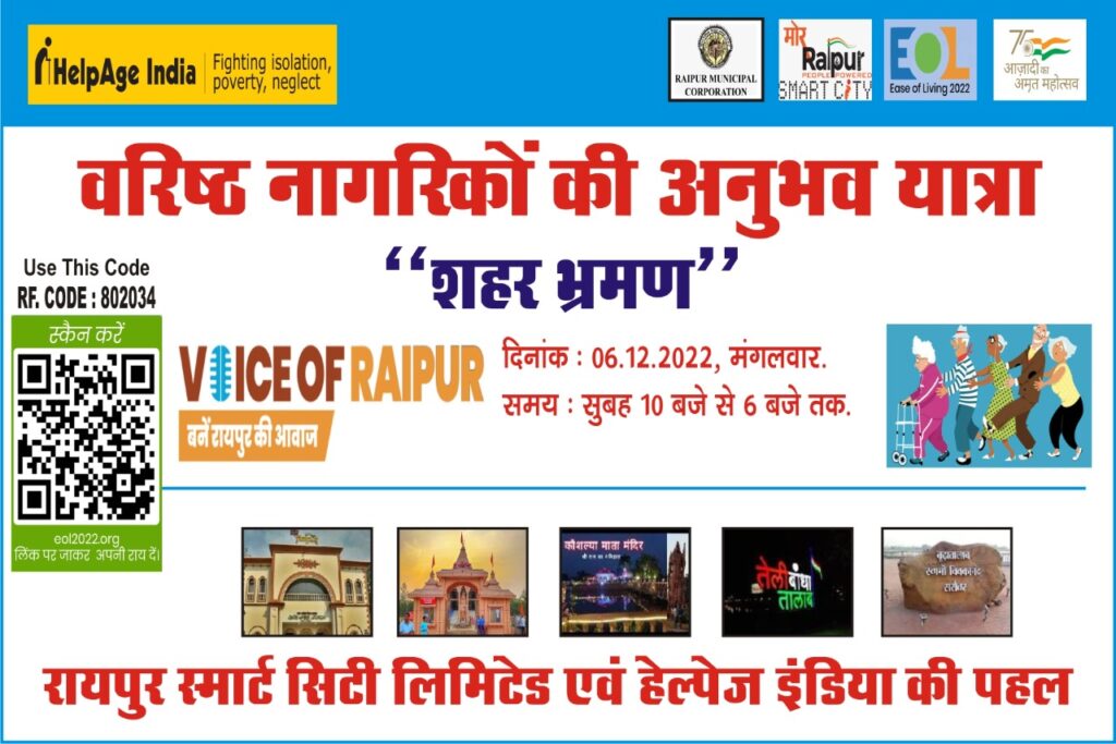 *सिटी रैंकिंग के लिए रायपुर स्मार्ट सिटी लि. व हेल्पेज इंडिया का आयोजन* *रायपुर।* नगर विकास...