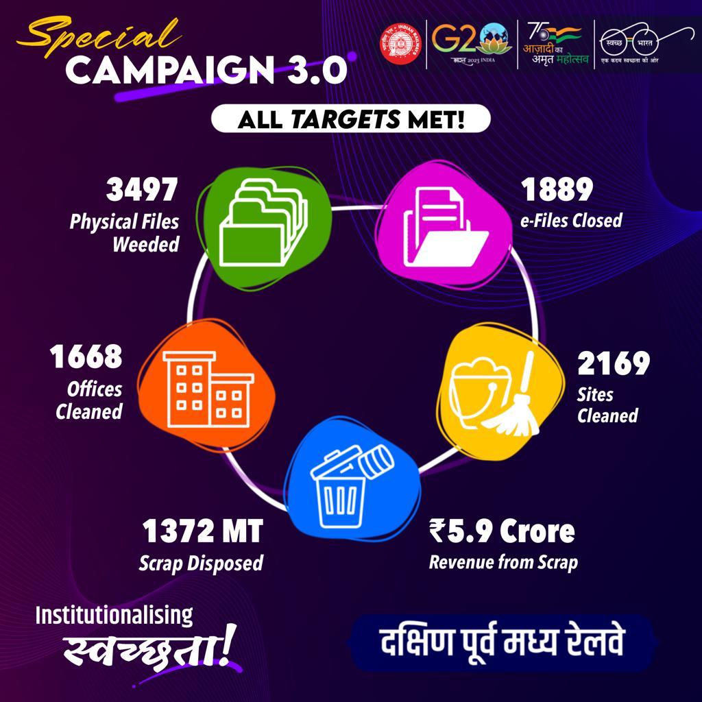 रायपुर/बिलासपुर – 01 नवंबर’ 2023 दक्षिण पूर्व मध्य रेलवे के सभी कार्यालयों में स्वच्छता और लंबित...
