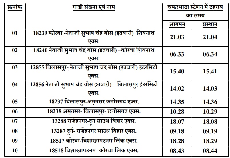रायपुर – 09 जनवरी, 2024 रेलवे प्रशासन द्वारा चकरभाठा में दिनांक 21 एवं 22 जनवरी, 2024...