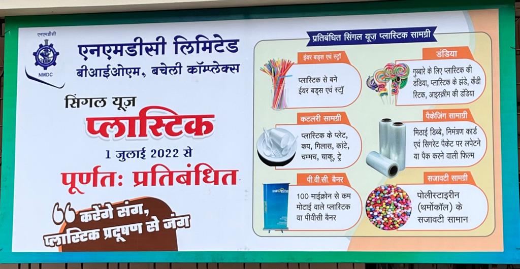 एनएमडीसी, बचेली में सिंगल यूज़ प्लास्टिक पर लगे बैन के तहत जागरूकता अभियान की शुरुआत