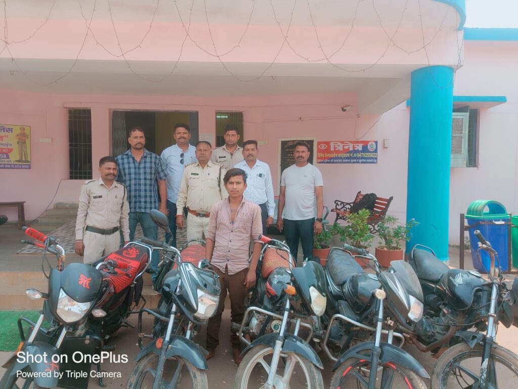 अलग अलग शहरों से चोरी किये गए 05 मोटर सायकल कीमती करीबन 2,75,000/- हजार रूपये सहित आरोपी...
